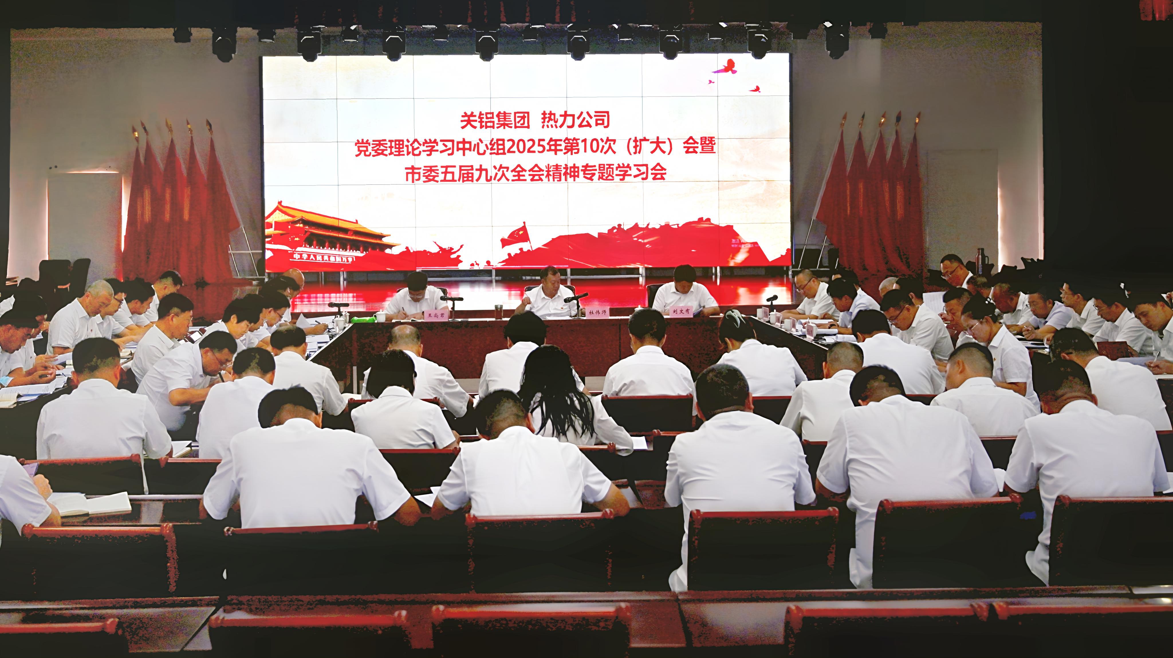 8月20日上午,公司党委联合关铝集团召开党委理论学习中心组2025年第10次(扩大)会暨市委五届九次全会精神专题学习会。党委书记、董事长杜伟师主持会议并讲话。关铝集团、热力公司领导班子成员,各党支部书记、支部委员,中层管理人员参加会议。