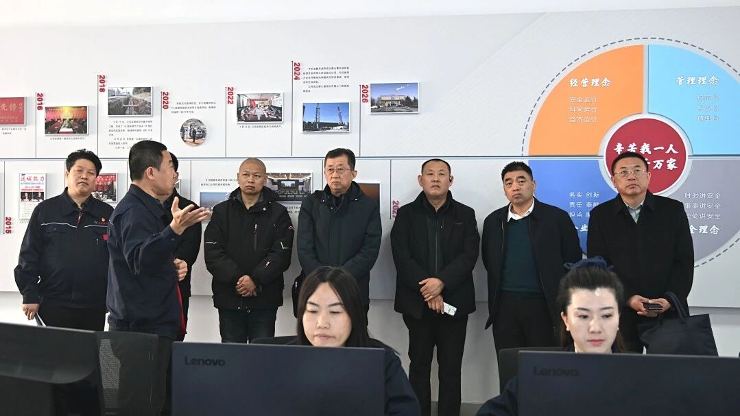 浅层地热能运行现场、东区深层地热能项目运营现场,以及公司调度中心、投诉中心实地调研项目建设运营情况与供热服务工作模式,观摩智慧供热检测平台实时运行动态。