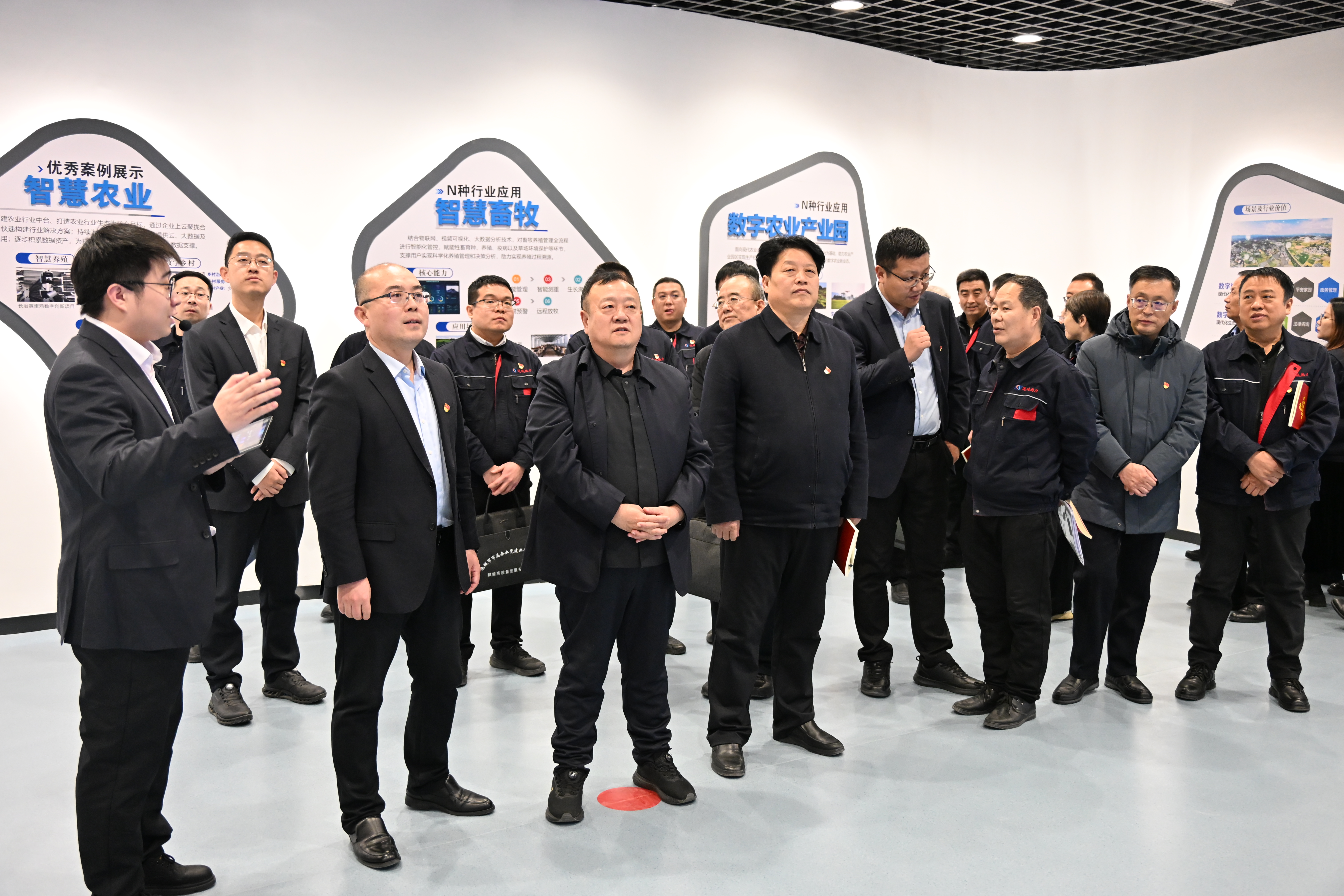 活动现场,大家在讲解员的细致引导下,有序参观了初心馆、使命馆与奋晋馆。在初心馆深入了解IDC机房与算力支撑。在使命馆实地感受5G技术赋能生产生活、智慧城市的广泛应用。在奋晋馆,珍贵的历史图片、详实的文献资料与现代化的展陈技术交相辉映,党员干部们循着历史脉络,系统回顾了我们党波澜壮阔的奋斗征程,深刻感悟党的初心使命与伟大建党精神的时代内涵。在“四史”教育厅和政治生活厅,党员干部们凝神驻足、认真观摩,从党史、新中国史、改革开放史、社会主义发展史的宏大叙事中,追溯精神之源、汲取奋进力量,深刻领悟到红色政权来之不易、新中国来之不易、中国特色社会主义来之不易。
