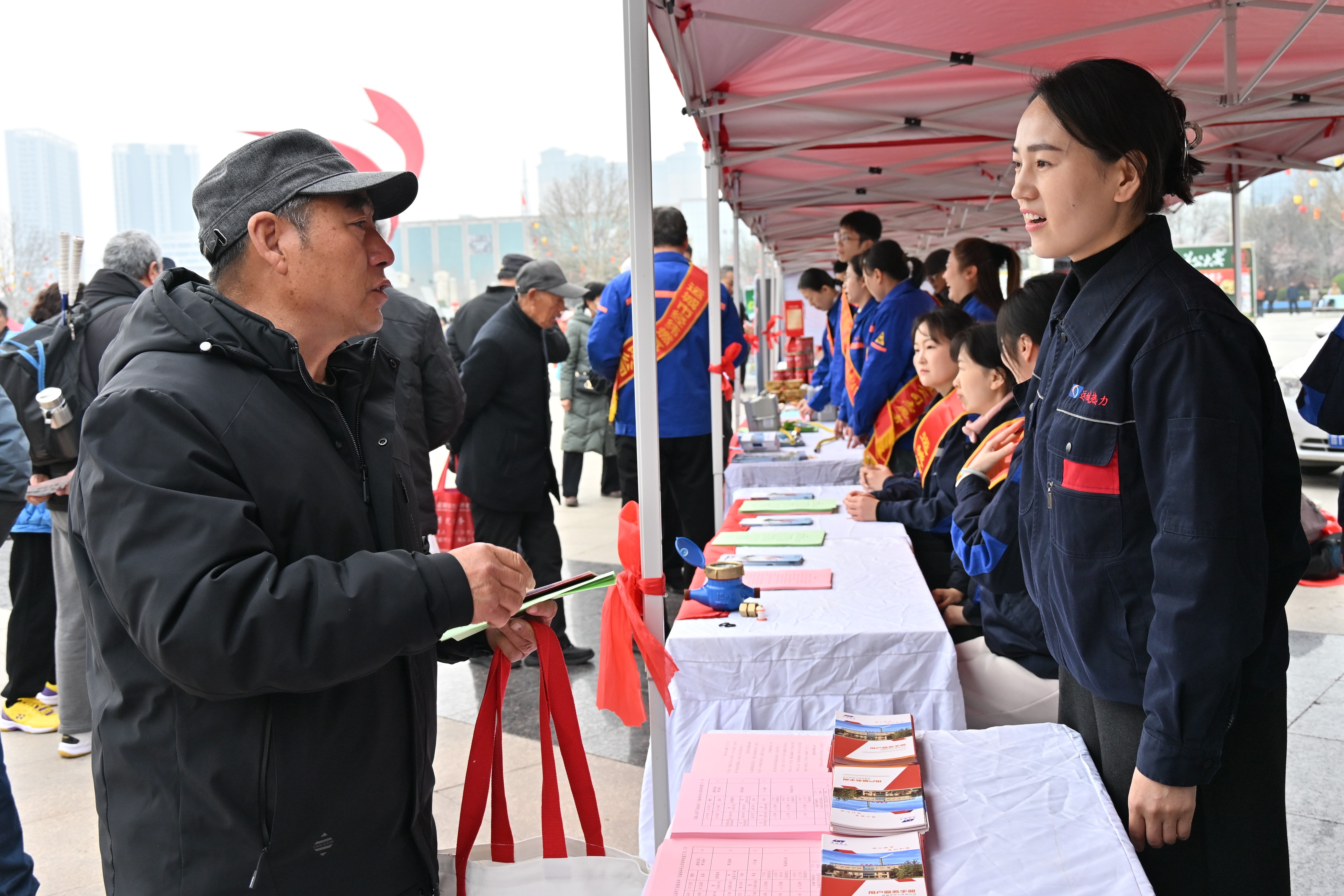 活动现场,公司设置咨询服务台,工作人员身着统一工装、佩戴工作牌,安排专职人员为市民讲解供热政策、收费标准、空闲房报停、线上业务办理、报修流程等内容,耐心解答群众用热咨询,收集意见建议,并发放供热宣传资料及活动礼品。活动期间,市相关领导来到公司展位检查指导,工作人员现场进行讲解汇报。